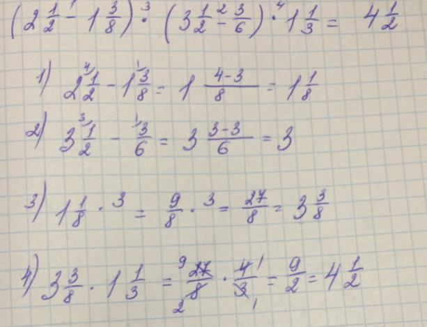 4) 27/8* 1 1/3= 27/8* 4/3= 9/2 *1/1= 9/2 = 4 1/2