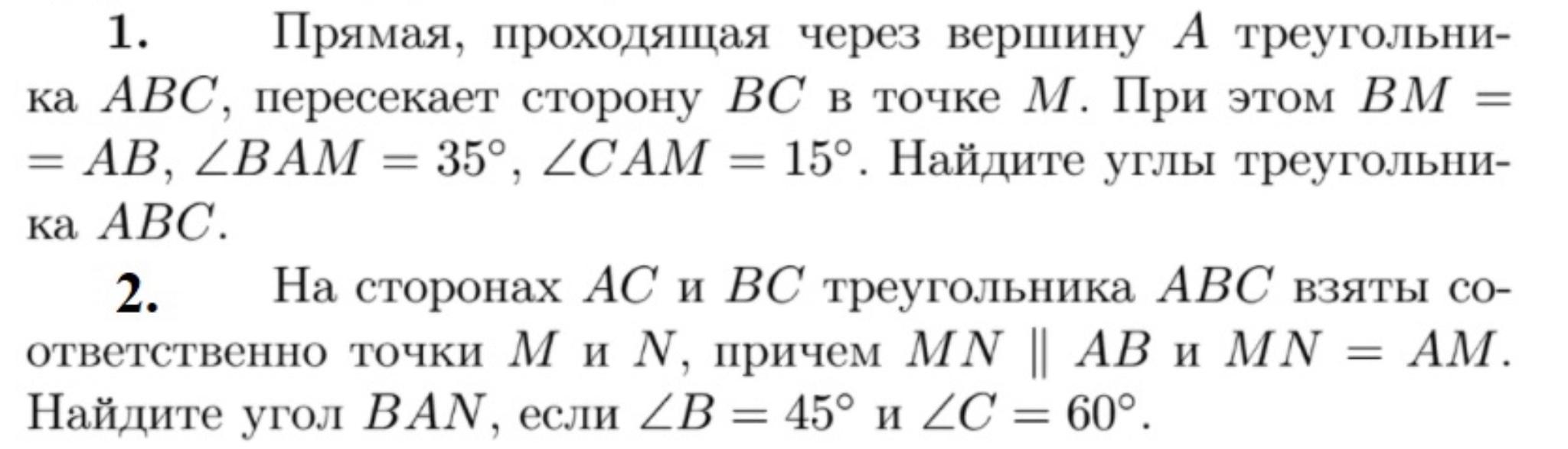 2) Так как МN || AB и МN = AM, то <MNA = <MAN (равнобедр. ∆) и = <ВАN (накрест лежащие углы).