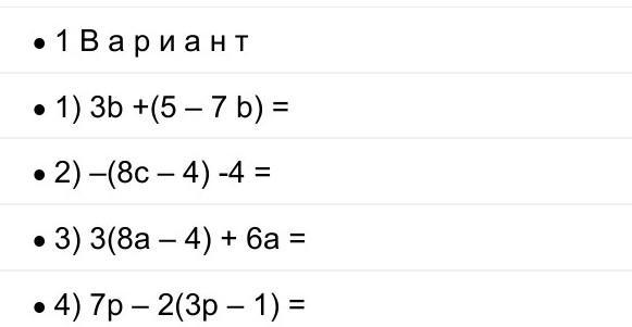 • 1) 3b +(5 – 7 b) = • 1) 5x + (11 – 7x) =