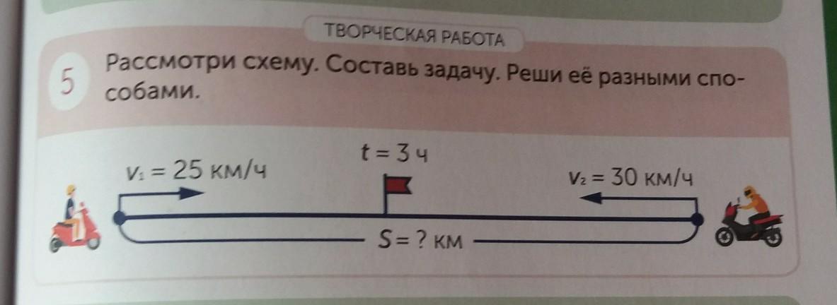 Два мотоциклиста выехали навстречу друг другу и встретились через 3 часа. Первый мотоциклист ехал со скоростью 25 км/ч, а второй со скоростью 30км/ч. Какое расстояние они проехали вместе?