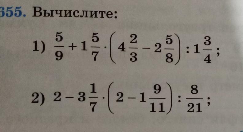 1) 5/9+1 5/7*(4 2/3-2 5/8):1 3/4=(4 2/3-2 5/8)=5/9+12/7×49/24:7/4=5/9+12×7/24*4/7=5/9+7/2×4/7=5/9+1/2×4=5/9+2=23/9 2) 1/2