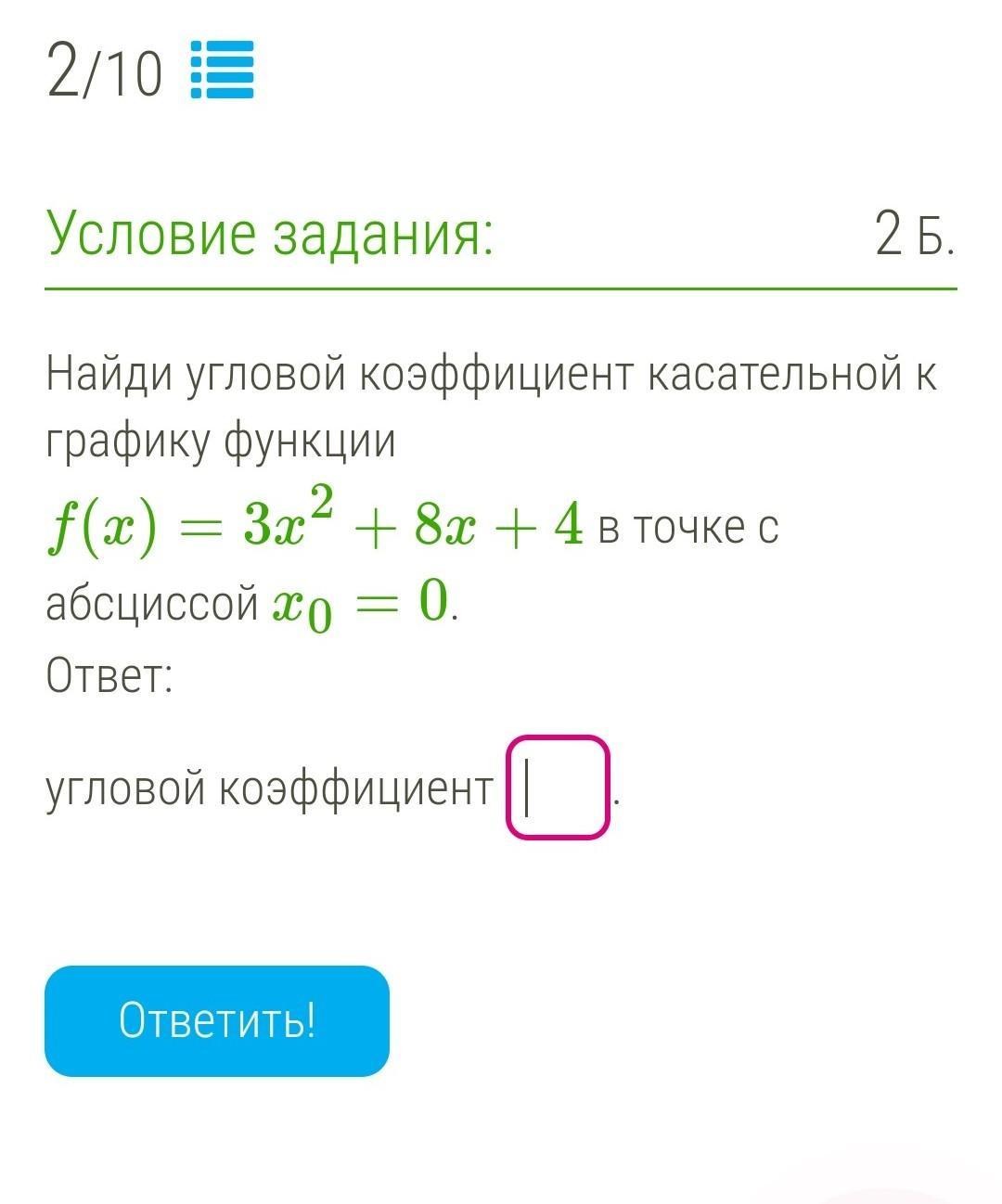 Уравнение касательной имеет вид y=f(x0)+f'(x0)(x-x0).
