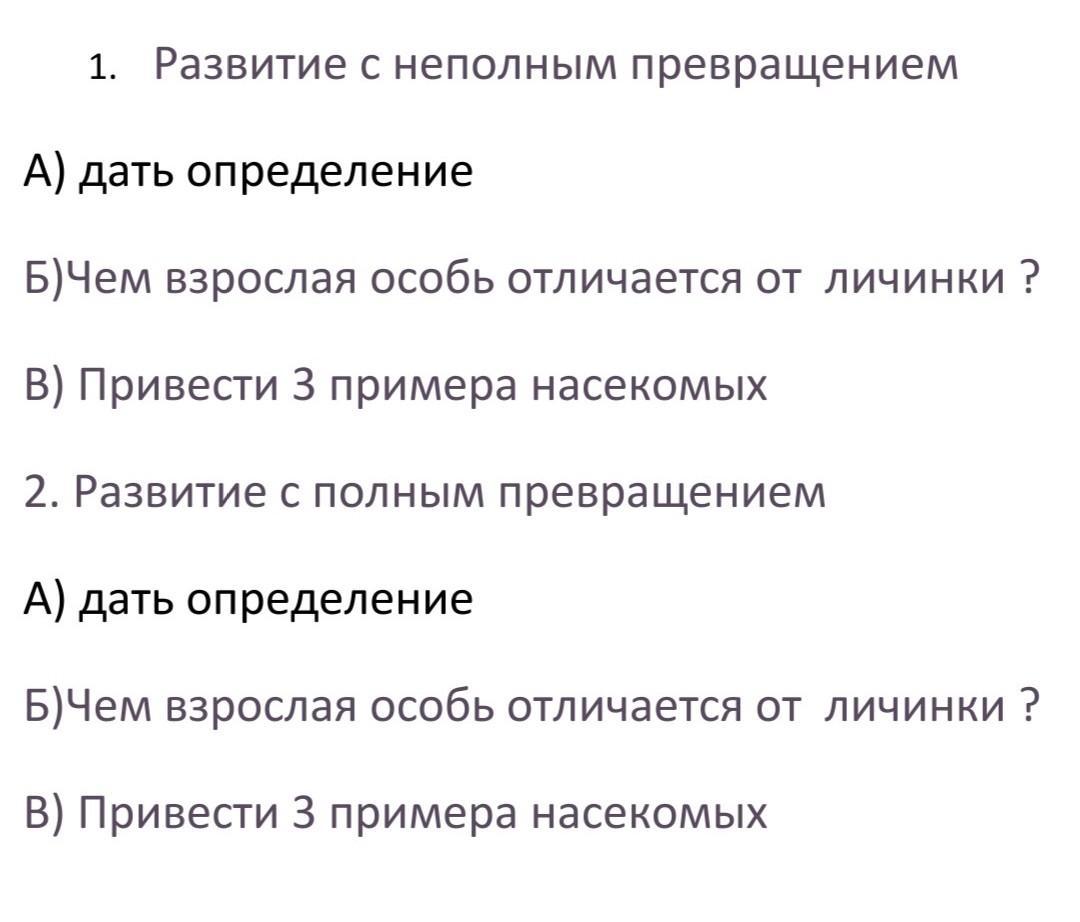 А)Развитие с неполным превращением - это прохождение насекомым в своем развитии три стадии: яйцо>личинка>взрослая особь