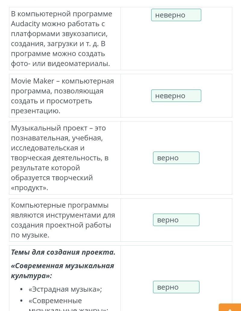 определи верный или неверный высказывания представлены в таблице в компьютерные программы уда сюда сити можно работать платформа звукозаписи