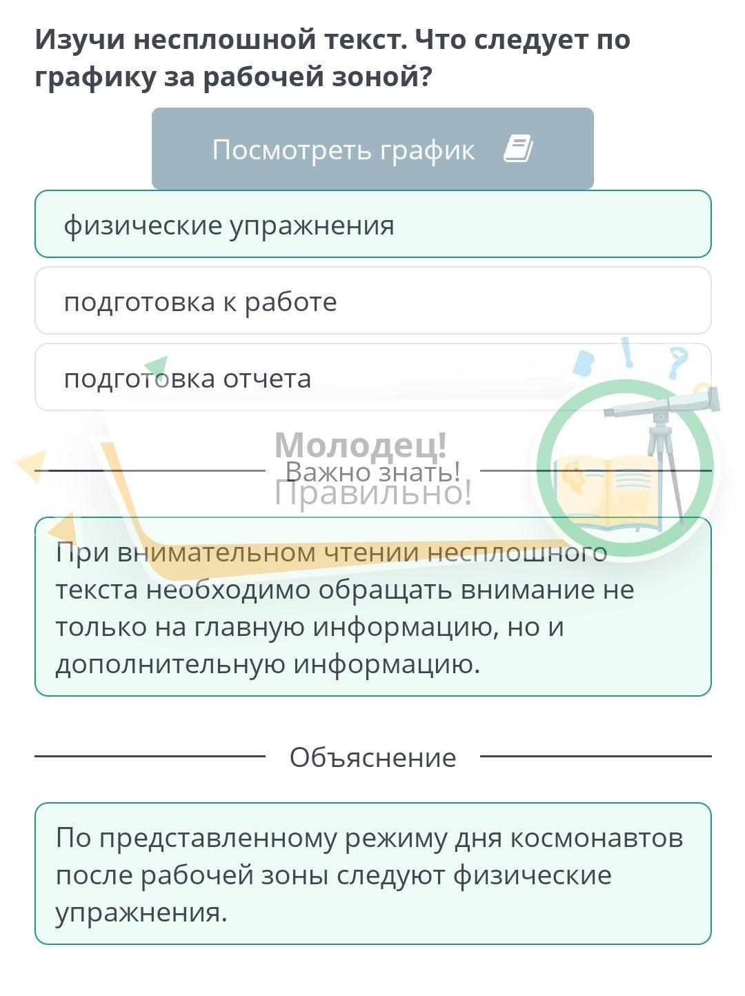 Снятся ли космонавтам сны? Изучи несплошной текст. Что следует по графику за рабочей зоной?