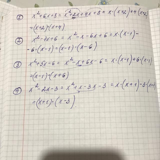 Разложить на множители представив один из его членов в виде суммы подобгых слагаемых Нужно 3 и 4