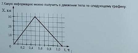 1) Тело 0,5 часа двигалось вдоль оси координат из точки отсчета, проехало 30 км со скоростью 30*2=60 км/ч.