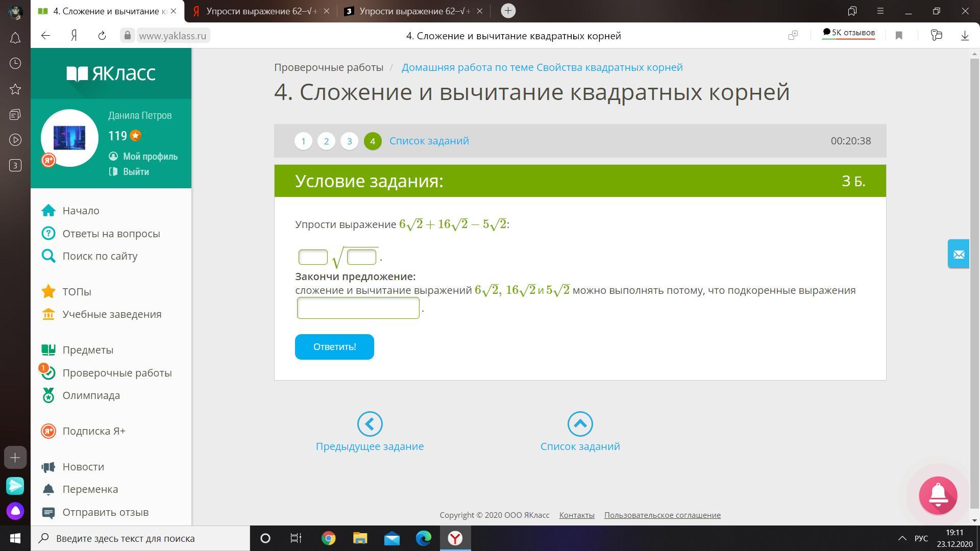 сложение и вычитание выражений 62–√,162–√и52–√ можно выполнять потому, что подкоренные выражения