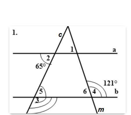 ∠1 = ∠6 = 59° как соответственные углы при пересечении прямых а ║ b секущей m.