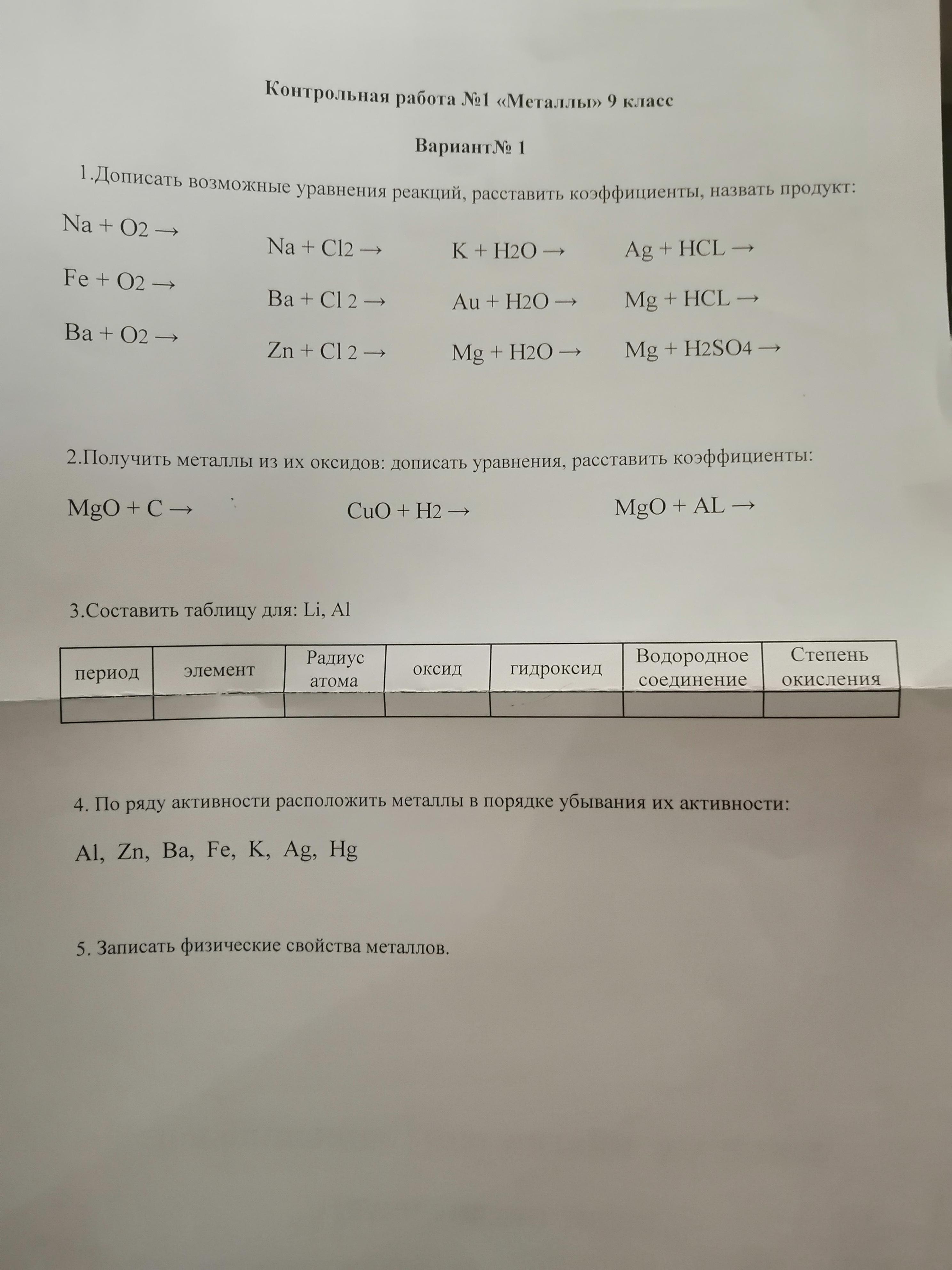 степен окисления Li +1, Al +3