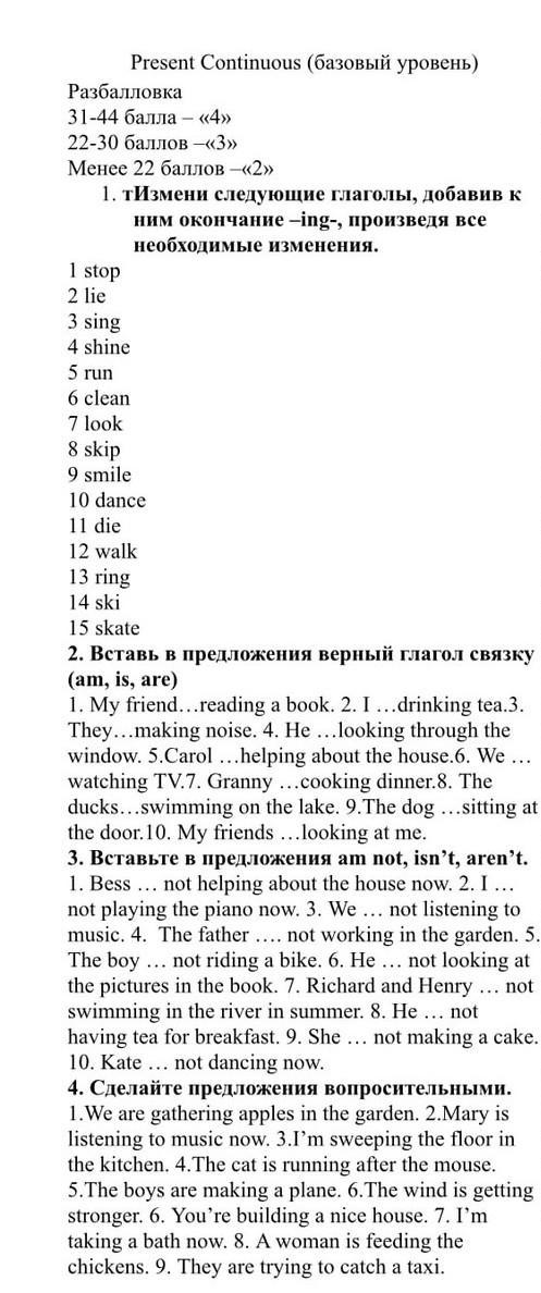 1. Are we gathering apples in the garden? 2. Is Mary listening to music now? 3. Am I sweeping the floor in the kitchen? 4. Is the cat running after the mouse? 5. Are the boys making a plane? 6. Is the wind getting stronger? 7. Are you building a nice house? 8. Is a woman feeding the chickens? 9. Are they trying to catch a taxi?