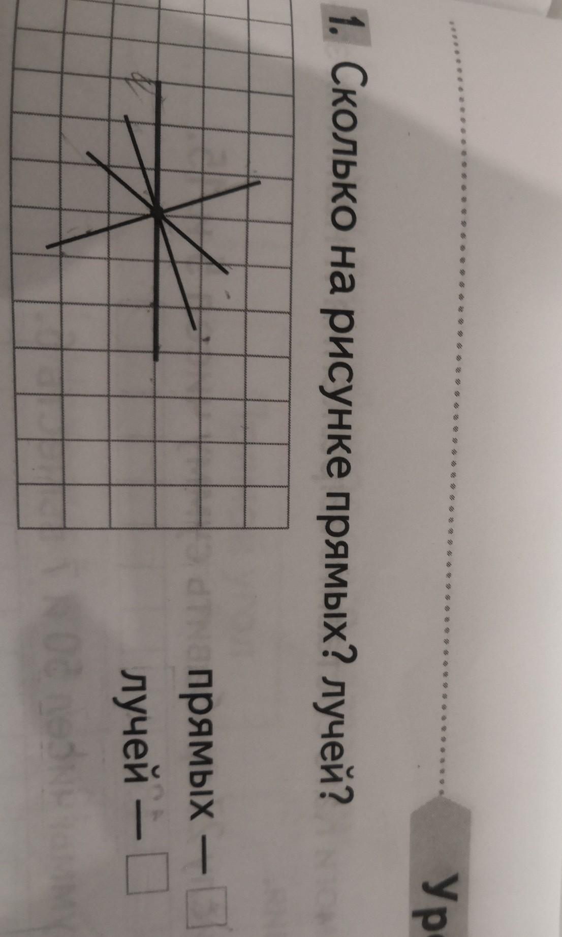 Прямых 1,который жирный. Лучей 3, которые тонкие.