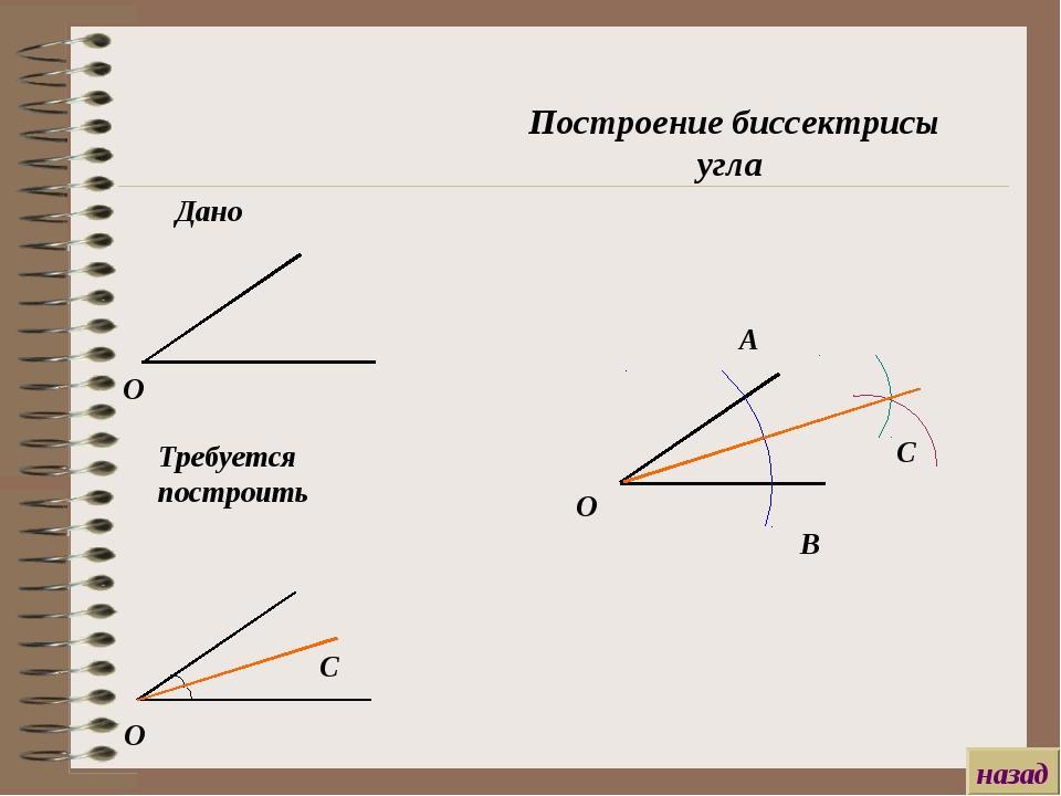 Построили угол ,потом его измерить линейкой с градусами и поделить пополам там и проводим биссектрису ,ну или циркулем