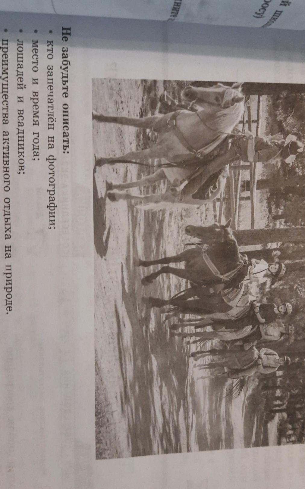 Описать фота:фота наверно сделано очень давно, и там ложади на которых дети учатся котаться.Они отдыхают на природе летом.