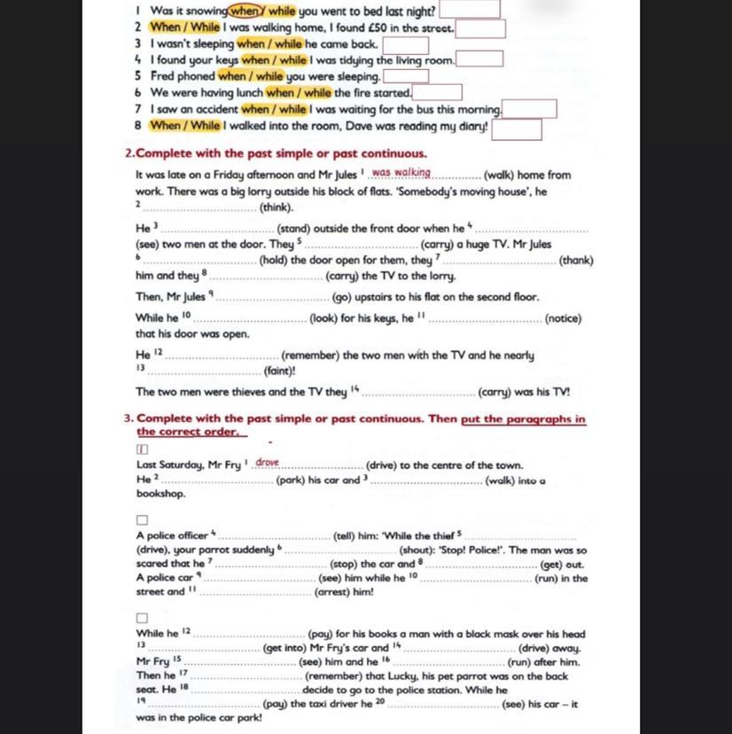 2. When. 3. When. 4. While. 5. While. 6. When. 7. While.