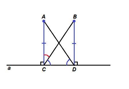 А и В находятся на одинаковом расстоянии от прямой а, значит