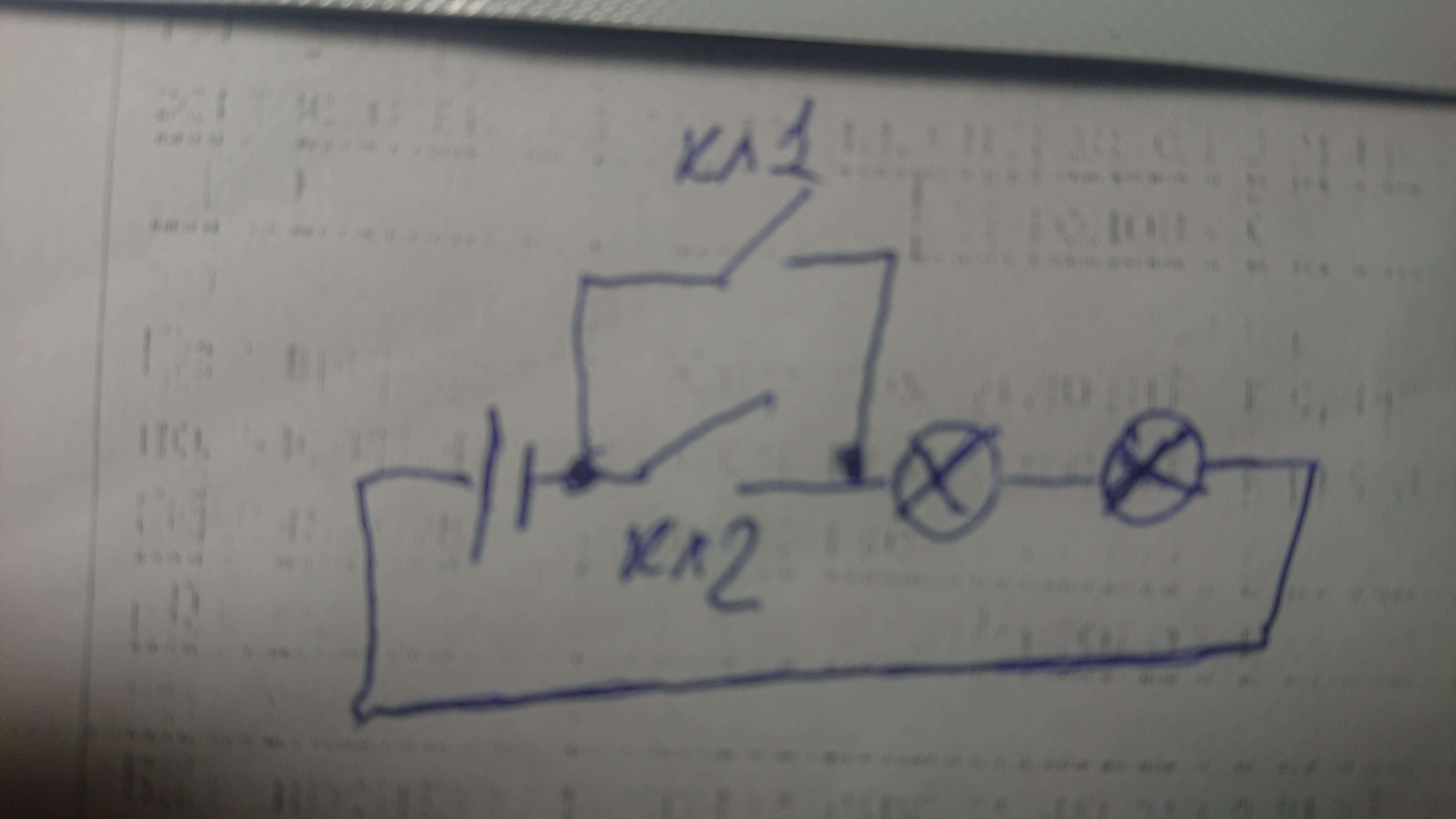 как нужно подключить к гальваническому элементу, чтобы при замыкании хотя бы одного ключа, одновременно загорались обе лампочки