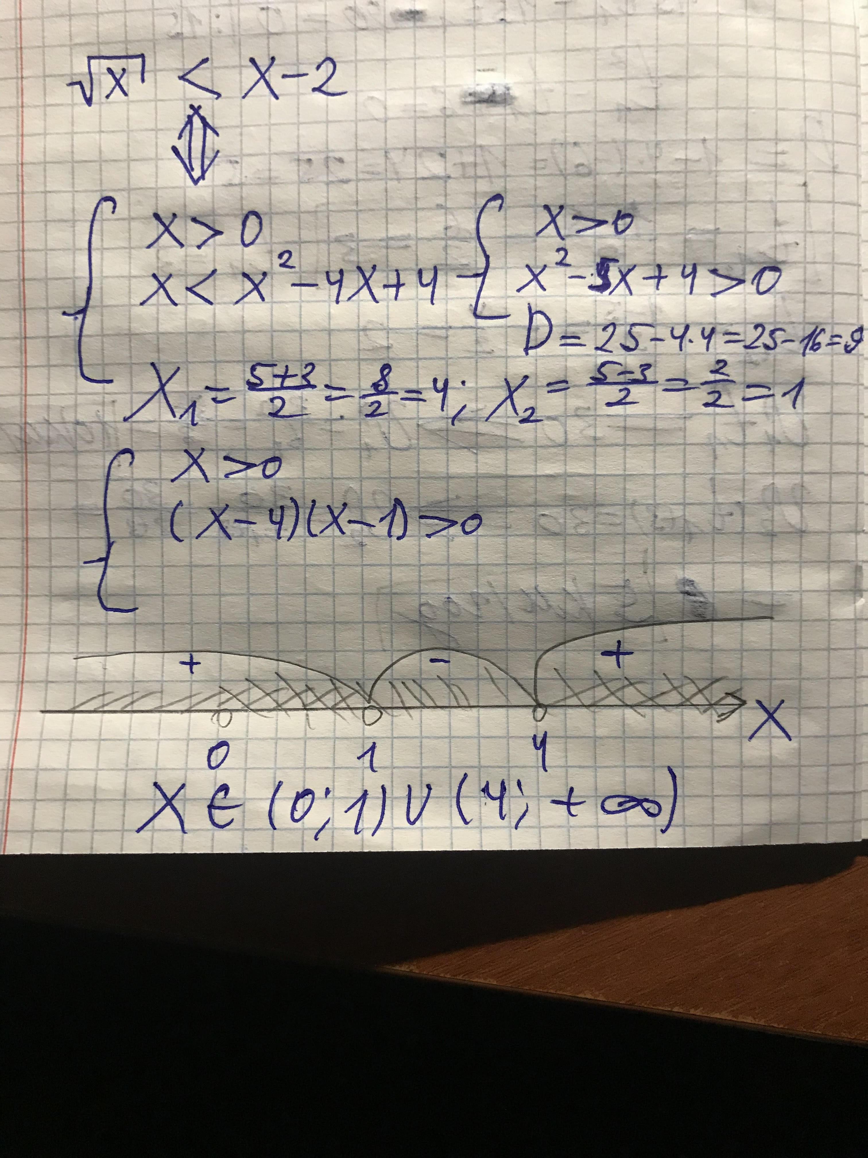 x є (0;1) ∪ (4;+∞)