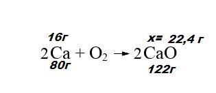При сгорании 16 г кальция образовался оксид кальция. Вычислить его массу.