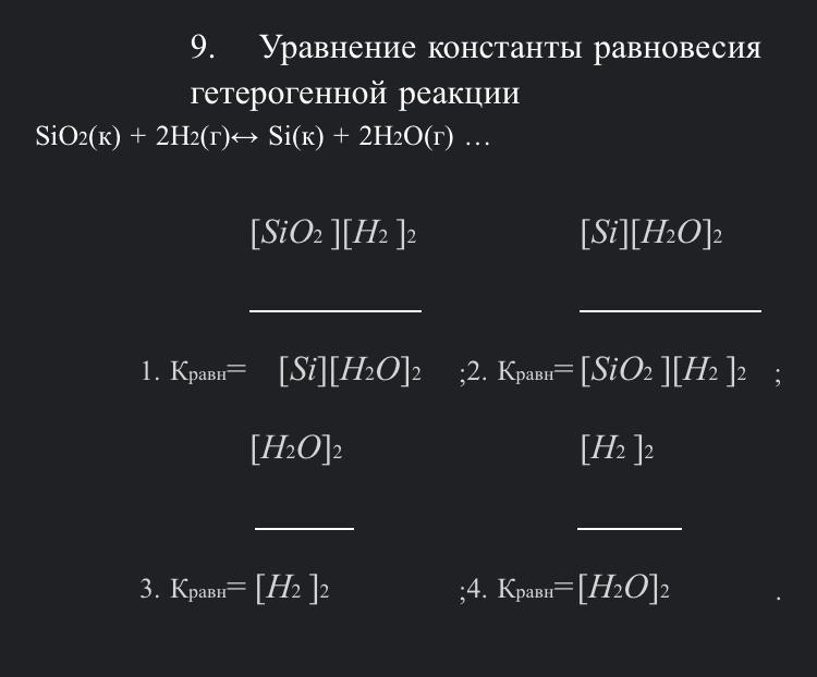SiO2(к) + 2H2(г)↔ Si(к) + 2H2O(г) …