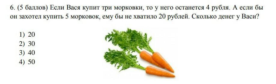 Если он захотел купить 5 морковок - 5 * 12 = 60, то у него не хватит 20 рублей(60 - 40).