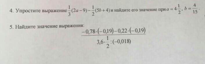 1/3(2а-9) - 1/2(5b+4) = (2a-9)/3 - (5b+4)/2