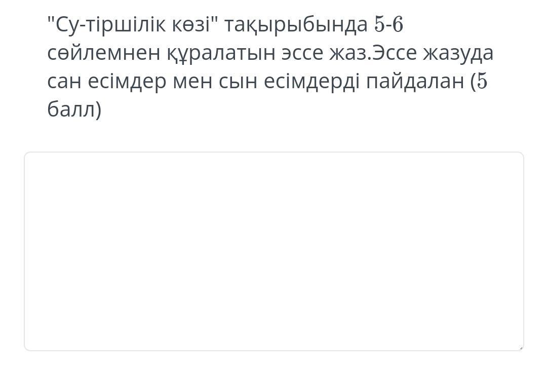 Су адамға қажет, өйткені су ішуге, тұрмысқа, гигиенаға және т.б. Өмір сусыз мүмкін емес.Сондықтан оған қамқорлық жасау керек, өйткені тіршіліктің қайнар көзі осы, өйткені планетадағы таза және таза су қалған пайыздың 2,5% құрайды, ол тұзды су.70% біз судан тұрамыз және бұл біздің тіршілік қуатымыздың көзі, және энергия біз үшін ғана емес, барлық тіршілік иелері мен өсімдіктерге суға мұқтаж. Олар «Су - тіршілік көзі» дейді және ол рас.