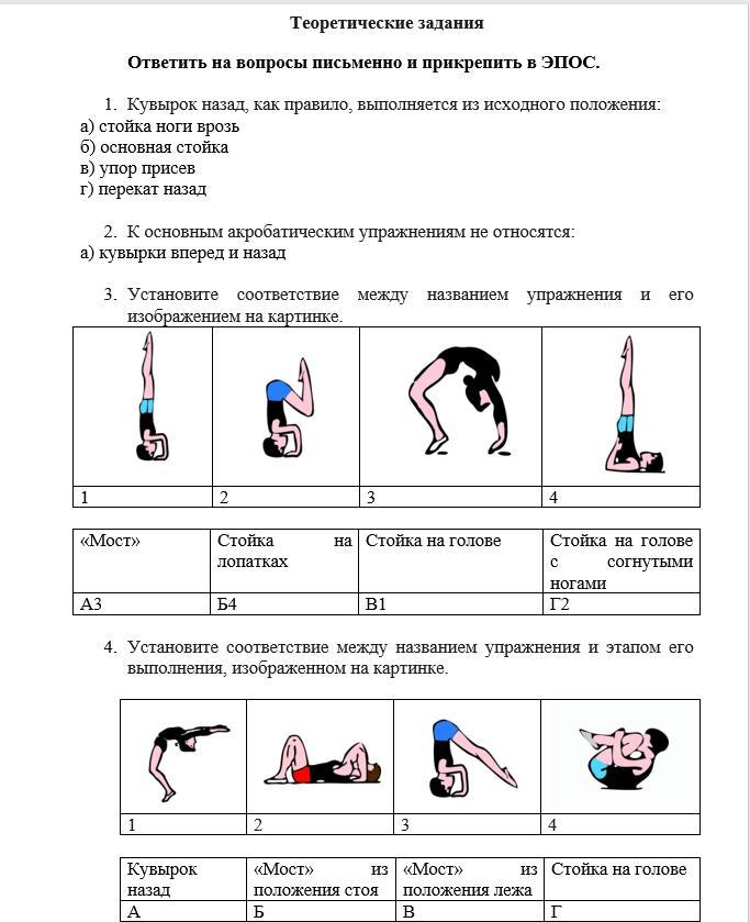 3. Установите соответствие между названием упражнения и его изображением на картинке.