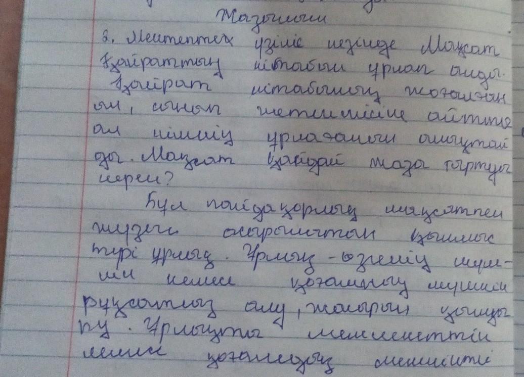 Мектепте үзіліс кезінде Мақсат Қайраттың кітабын ұрлап алды. Қайрат кітабының жоғалғанын сынып жетекшісіне айтты, ол кімнің ұрлағанын анықтады. Сіздің ойыңызша, Мақсат қандай жаза тартуы керек? Өз ойыңызды дәлелдеп, аргументативті эссе жазыңыз.