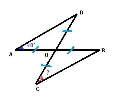 ΔAOD и ΔBOD - равнобедренные: АО = ОD, ОВ=СО - как половины равных отрезков АВ и СD. У равнобедренных треугольников углы при основании равны ⇒ ∠BCO=∠DAO= 40°