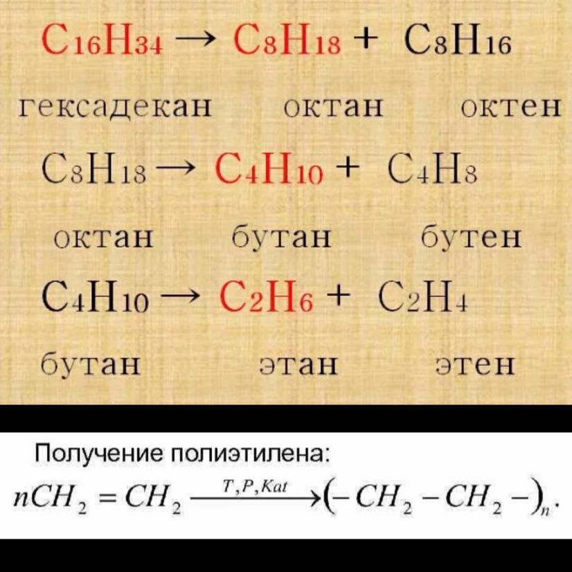 А) гексадекан - октан - бутан - этен - полиэтилен