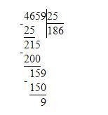 Ответ: 4659 ÷ 25 = 186 целых 9 в остатке