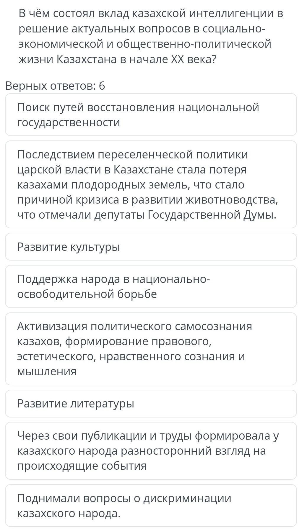 В чём состоял вклад казахской интеллигенции в решение актуальных вопросов в социально- экономической и общественно-политической жизни Казахстана в начале XX века?