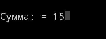 Напишите программу, которая вычисляет сумму натуральных чисел от 1 до 5.
