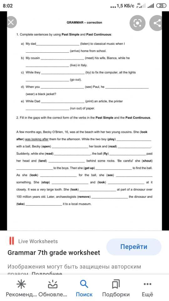 fill in the gaps with the correct form of the verbs in the past Simple and the Past Continues