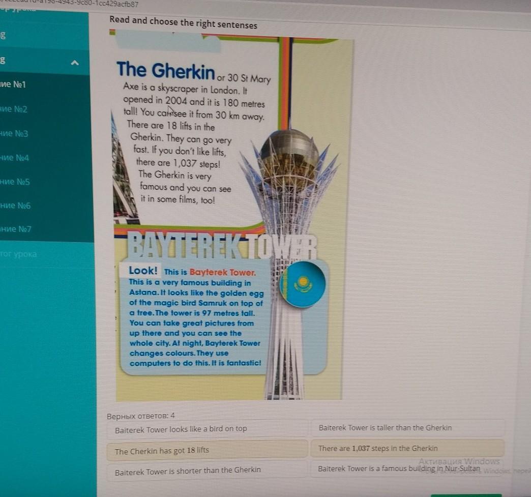 Baiterek tower is shorter than the Gherkin