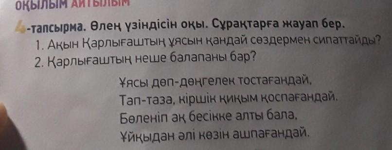 1. Ақын Қарлығаштың ұясын дөңгелек тостағандай сипаттайды.