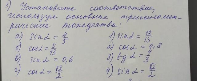Установите соответствие используя основные тригонометрические тождества ПОМОГИТЕ ПОЖАЛУЙСТА У МЕНЯ ТЕСТ ЗА ЧЕТВЕРТЬ
