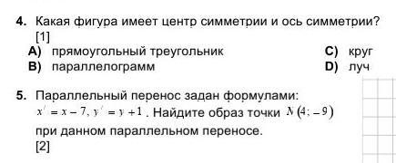 4) одновременно и ось симметрии и центр симметрии имеют квадрат, круг