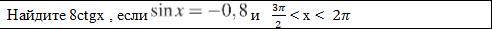 угол принадлежит 4 четверти, косинус положительный, котангенс отрицательный.