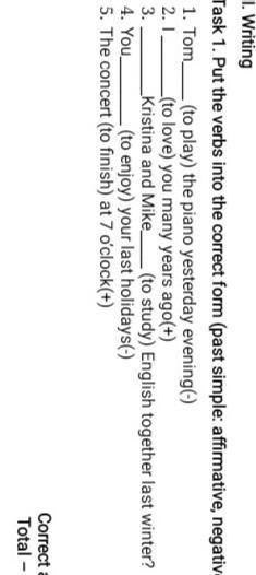Put the verbs into the correct form (past simple: affirmative, negative, question).