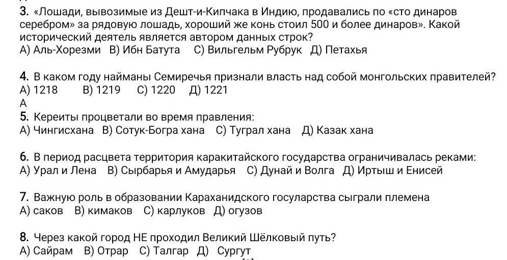 4) В 1211 г. найманы во главе Кучлук-ханом захватили власть в Семиречье и образовали свое ханство. В 1218 г