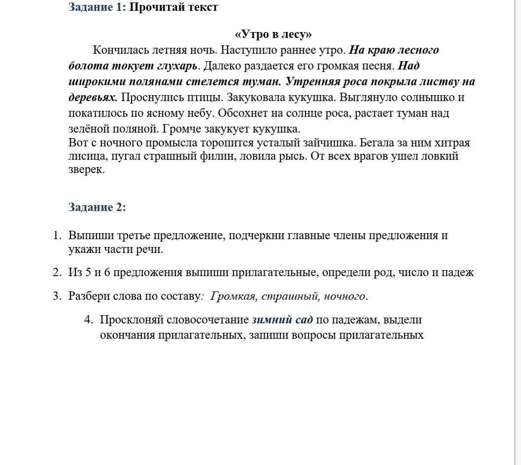 глухарь-подлежащие,существительное;токует-сказуемое,глагол;на краю-обстоятельство,существительное;болота-дополнение,существительное;лесного-определение,прилагательное.