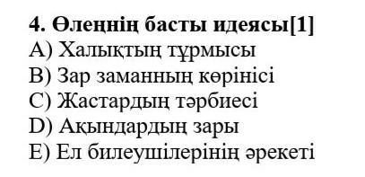 4. өлеңнің басты идеясы a) халықтың тұрмысы b) зар заманның көрінісі c) жастардың тәрбиесі d) ақындардың зары e) ел билеушілерінің әрекеті