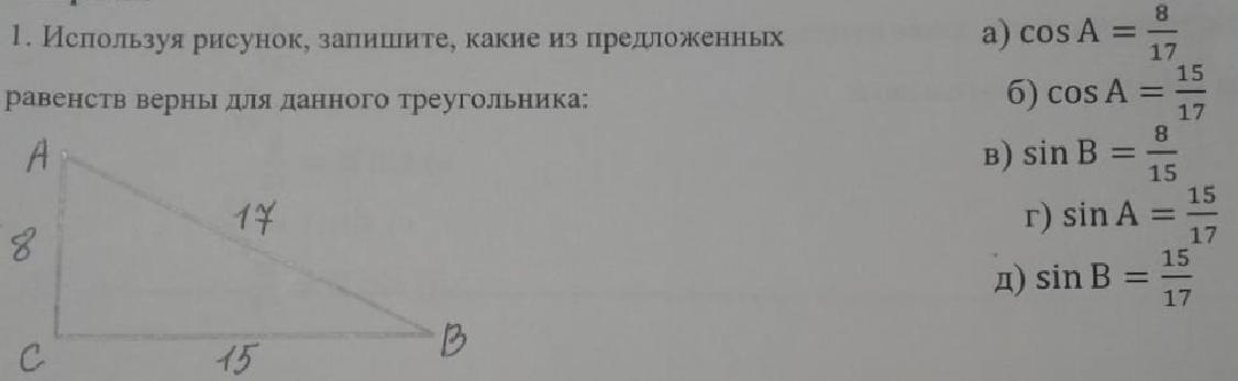 СРОЧНО!!! Используя рисунок, запишите, какие из предложенных равенств верны для данного треугольника.