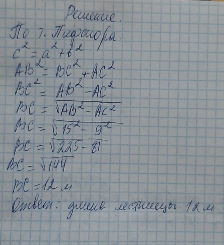 ПОМОГИТЕ ПЖ СОЧ Лестница длиной 15 метров приставлена к вертикальной