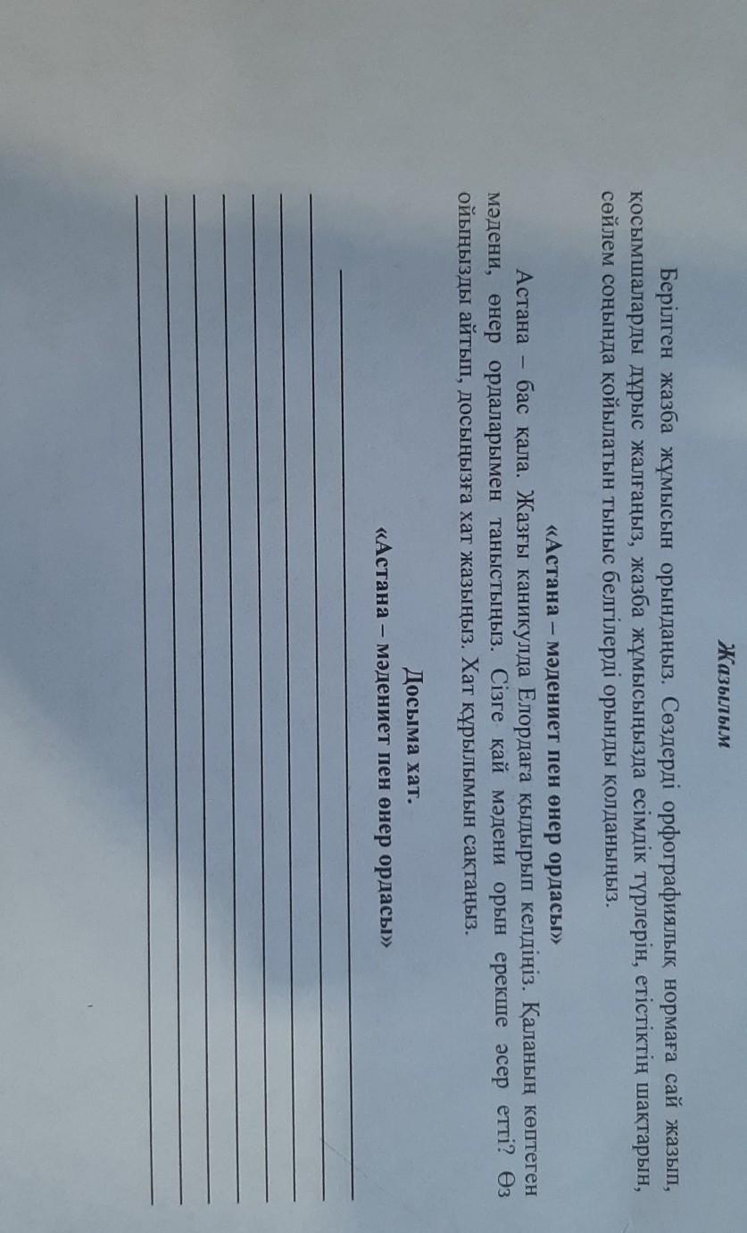 Астана – мәдениет пен өнер ордасы Астана қаласы – 1998 жылдан бастап мемлекетіміздің әкімшілік-саяси орталығы. Сонымен қатар мәдениет пен өнер, білім мен ғылым, озық технологиясы уақыт талабына сай дамыған қала. Астанада Қ.Қуанышбаев атындағы қазақ музыкалық драма театры, М.Горький атындағы орыс драма театры, Тәуелсіздік сарайы, Бейбітшілік және келісім сарайы, Президенттік мәдени орталық, Конгресс-холл, «Жастар» сарайы, «Қазақстан» концерт залы, қалалық филармония және баса да бірсыпыра мәдениет ошақтары бар. Елордамызда көптеген жоғары оқу орындары мен колледждер, мектептер мен балабақшалар, балалар 53 қалашықтары бар. Еліміздің бас қаласында спорттың дамуына да үлкен мән берілуде. «Қазақстан», «Алатау», «Астана» сияқты спорт кешендері, велотрек, мұз айдыны мен «Астана-Арена», Қ.Мұңайтпасов атындағы стадиондар соның куәсі.