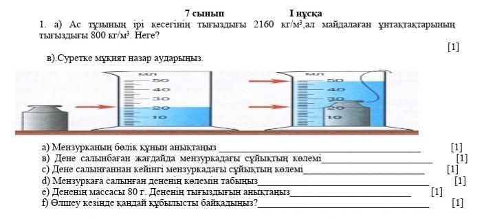 Ответ:1дің жауабы 100г/40см³=2,5г/см³ 2,5г/см³×1000=2500кг/м³