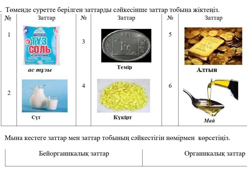 Органикалық заттар:ас тұзы, сүт, май.