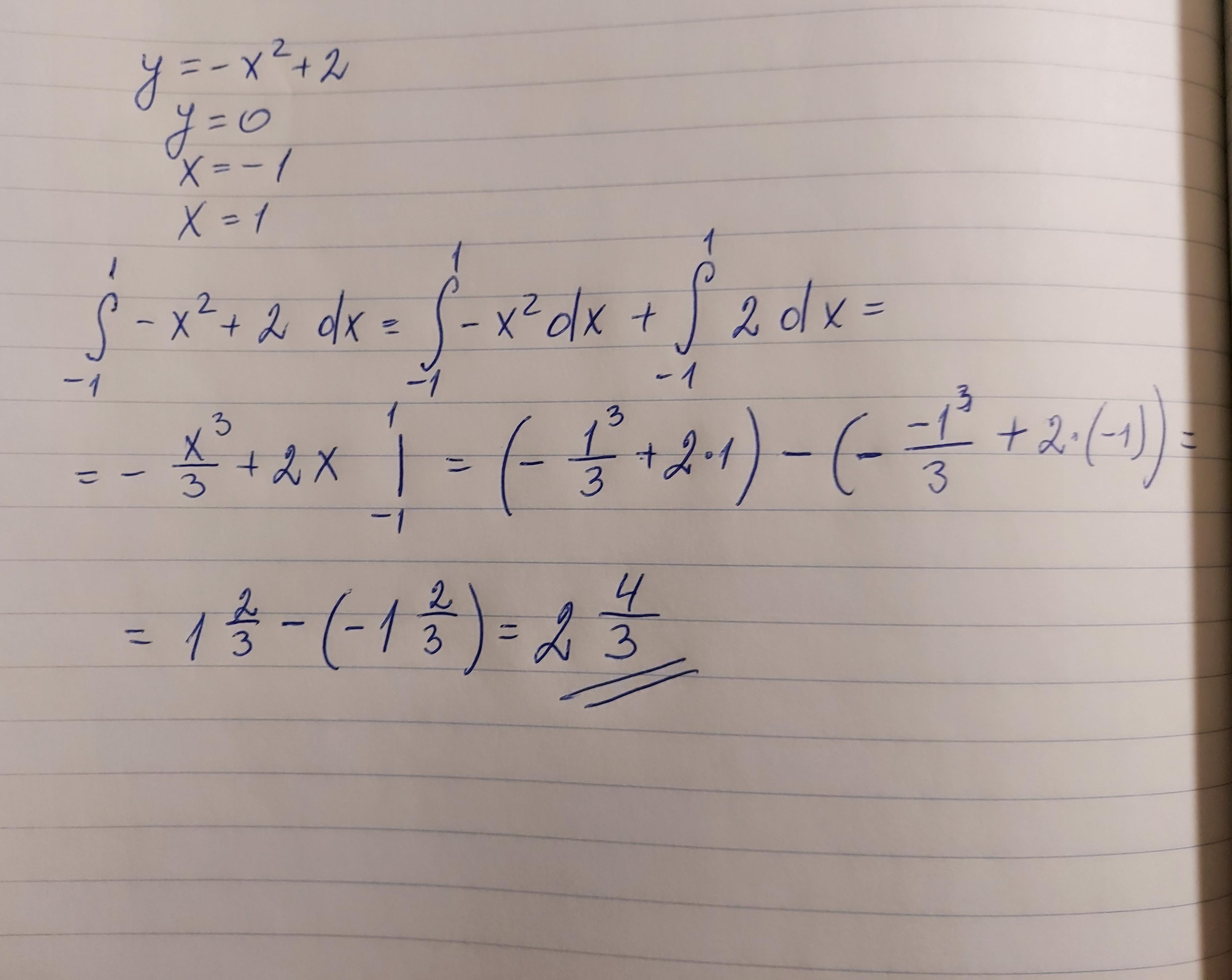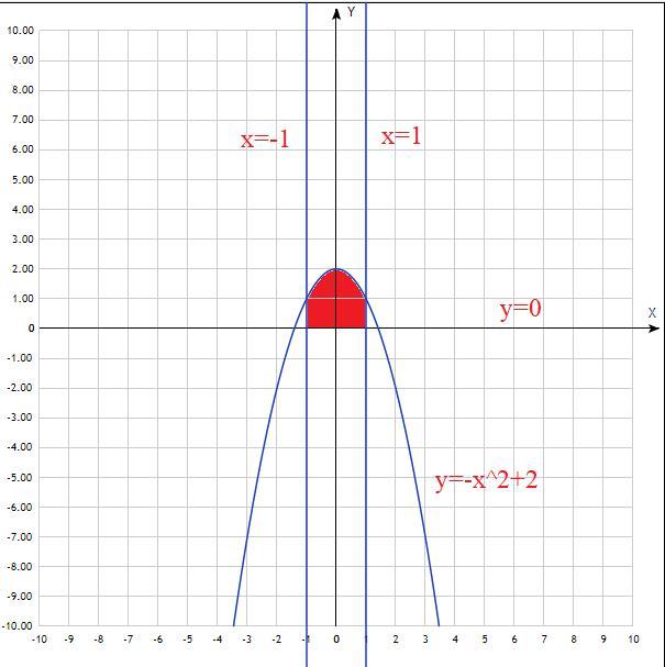 ограниченной линиями: у = -х2 + 2, у = 0, х = -1, х = 1.